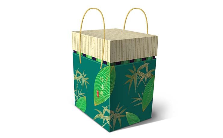 包裝禮盒設(shè)計結(jié)合當?shù)匚幕贼杖~的綠色為底色進行設(shè)計和變化,搭配以大氣高檔的禮盒盒型,運用了先進和精湛的工藝技術(shù),紅門包裝致力于客戶和消費人群的共同滿意,滿足端午送好禮的市場需要。