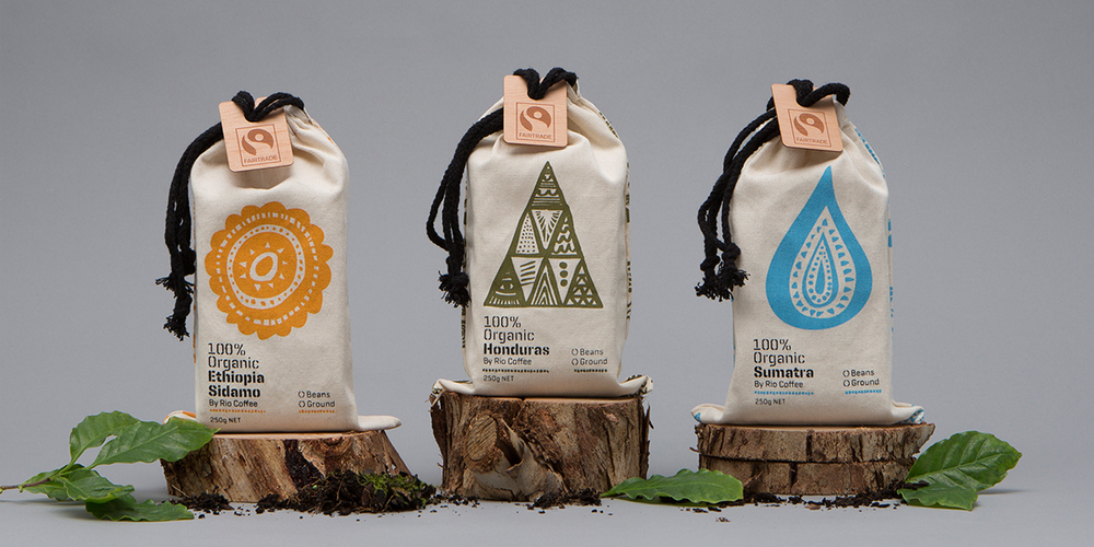 有什么更好的方式來開始你的一天比新鮮煮咖啡的氣味。對于那些尋找一個“杖上”,不僅味道好,而且是100%有機,看看里約咖啡。設計的聲音,每袋是一個抽象的標志,代表每個氣候的關鍵方面。在零售貨架的不同視覺分化,為消費者提供一個難忘的觸覺體驗,咖啡是裝在一個棉布袋,這也說明有機/公平貿易的耕作和工匠的手焙燒技術。